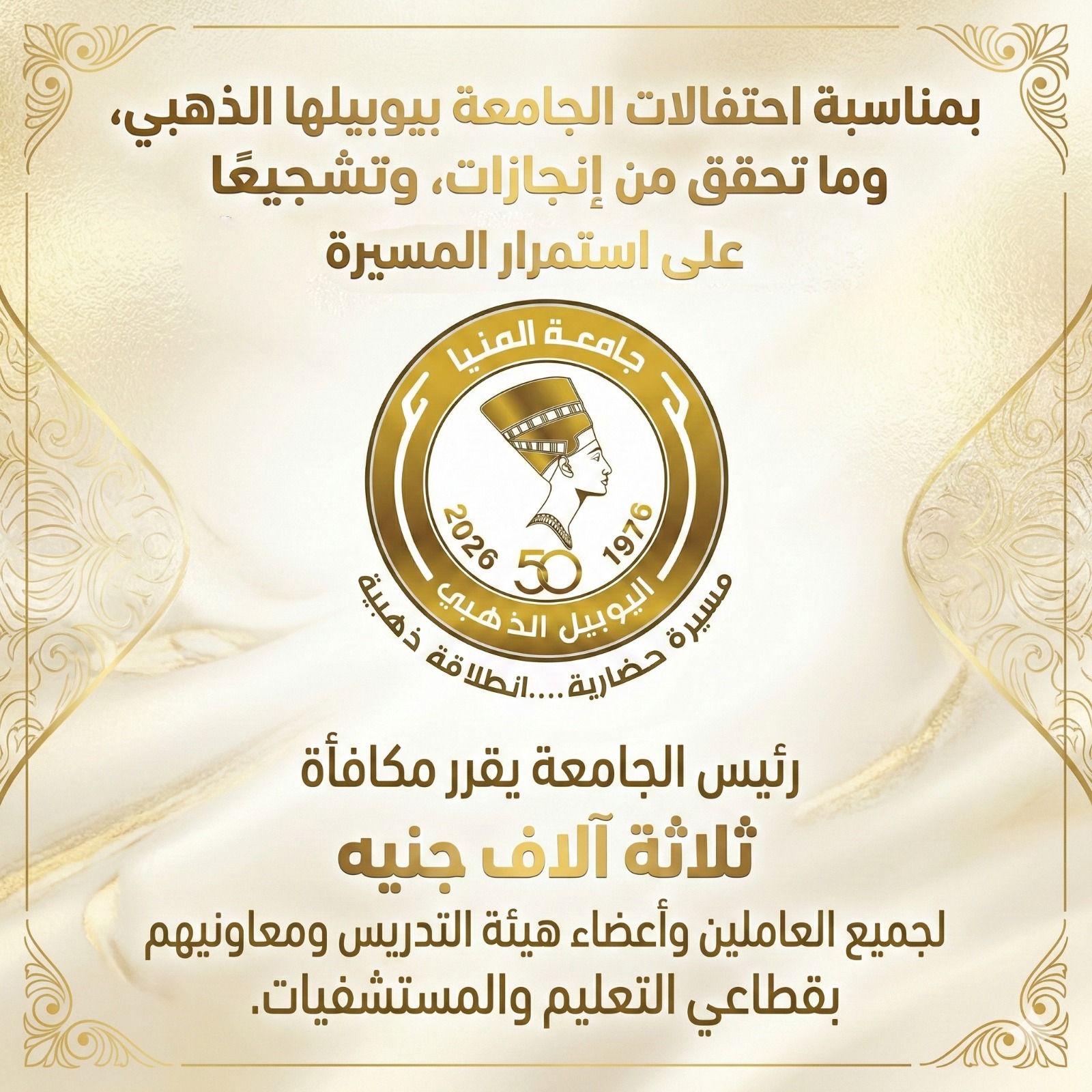 بمناسبة احتفالات الجامعة بيوبيلها الذهبى وماتحقق من انجازات وتشجيعاً على استمرار المسيرة: