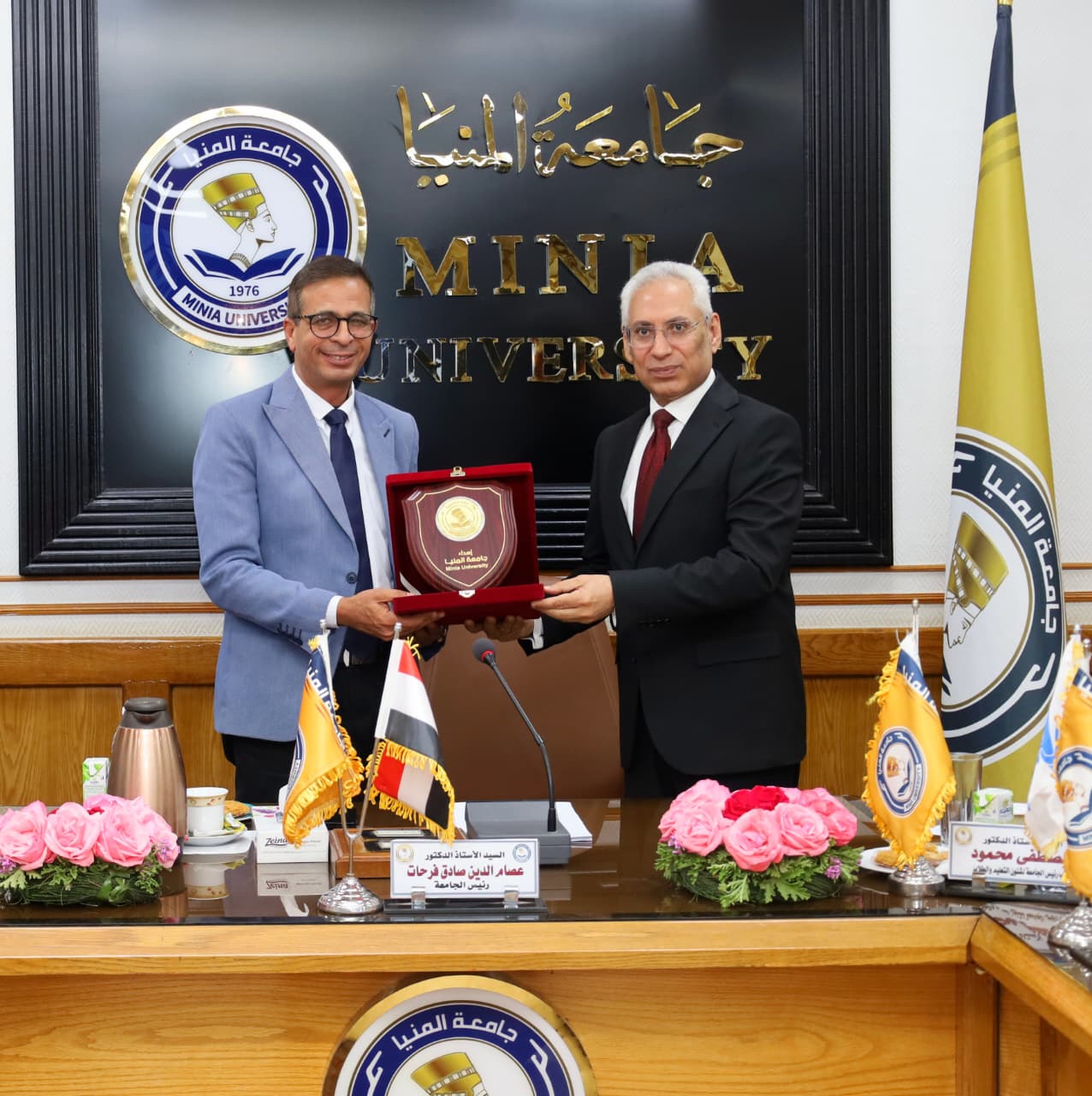 عقد مجلس جامعة المنيا اجتماعه الدوري برئاسة الدكتور عصام الدين صادق فرحات، رئيس الجامعة، لمناقشة عدد من الملفات الحيوية واتخاذ قرارات تنظيمية واستراتيجية تدعم مسارات التطوير المؤسسي الشامل، في إطار حرص الجامعة على مواصلة مسيرتها التنموية وتعزيز مكانتها الأكاديمية والبحثية والمجتمعية، وذلك بحضور السادة نواب رئيس الجامعة: الدكتور أيمن حسنين نائب رئيس الجامعة لشئون خدمة المجتمع وتنمية البيئة، والدكتور مصطفى محمود نائب رئيس الجامعة لشئون التعليم والطلاب، والدكتور حسام شوقي نائب رئيس الجامعة لشئون الدراسات العليا والبحوث، وعمداء الكليات، ومدير مركز ضمان الجودة والاعتماد، والمدير التنفيذي للمعلومات، والمستشار القانوني، وأمين عام الجامعة.