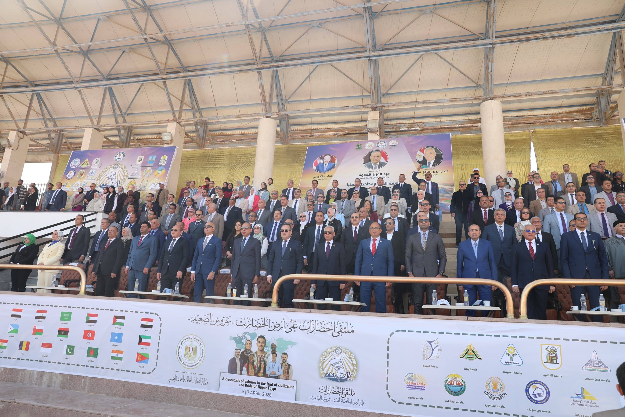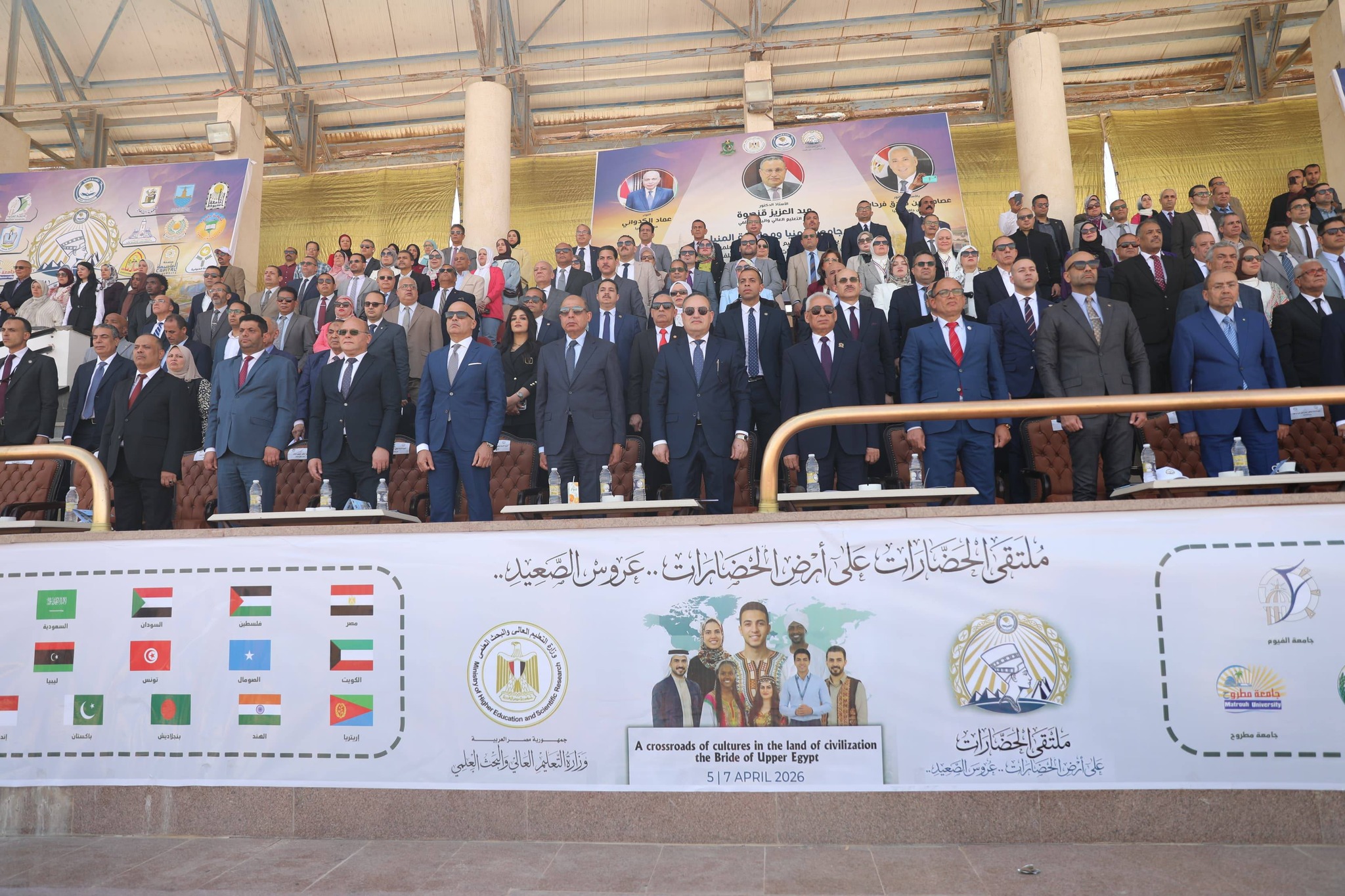 وزير التعليم العالي ومحافظ المنيا ورئيس جامعة المنيا يشهدون ختام فعاليات "ملتقى الحضارات" بجامعة المنيا
