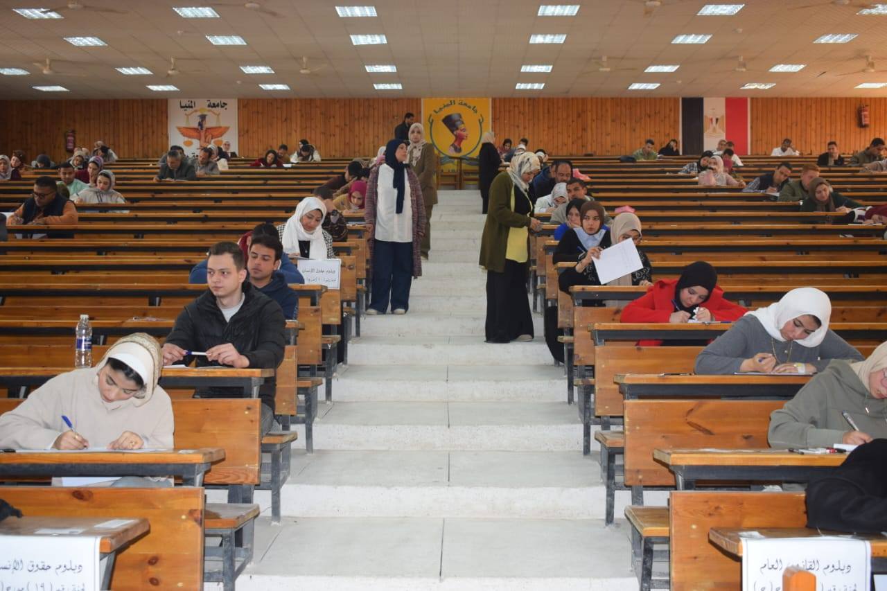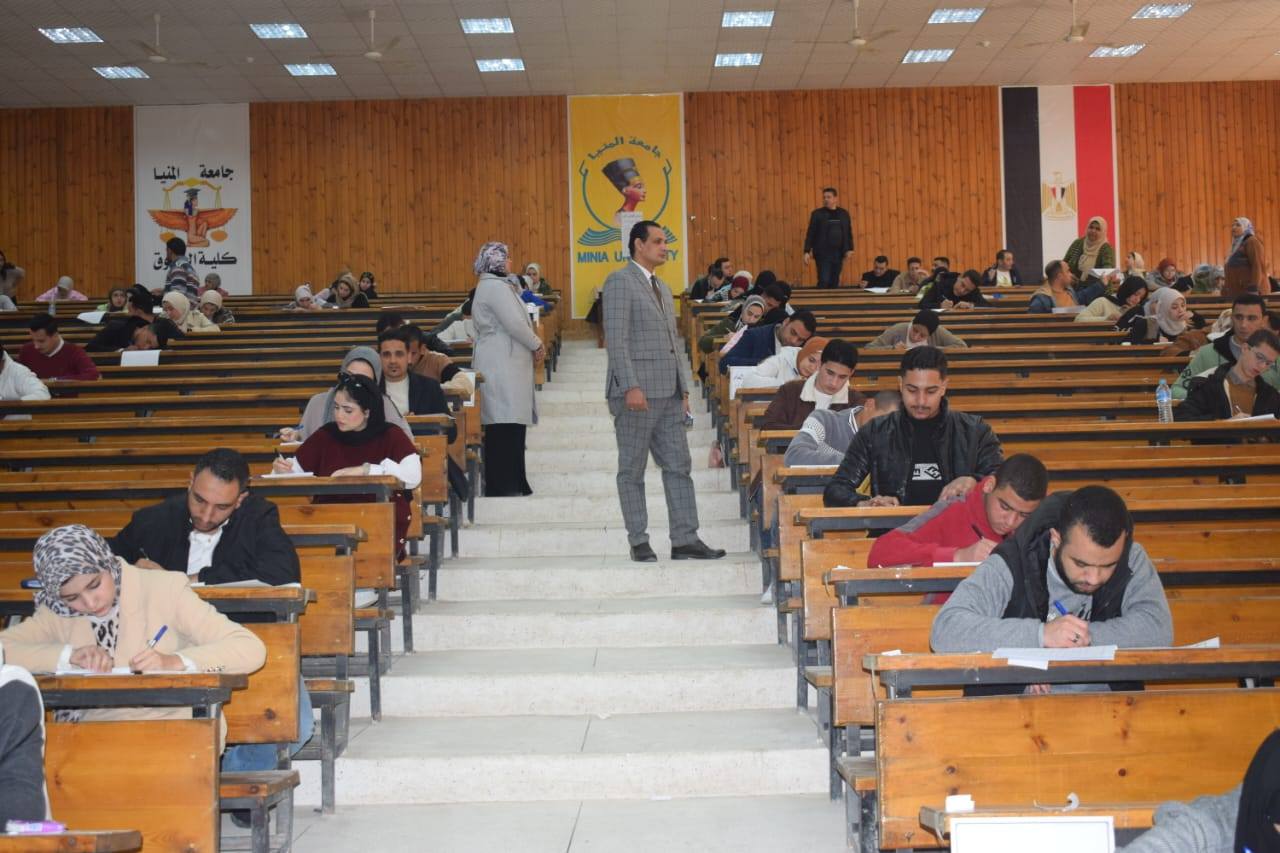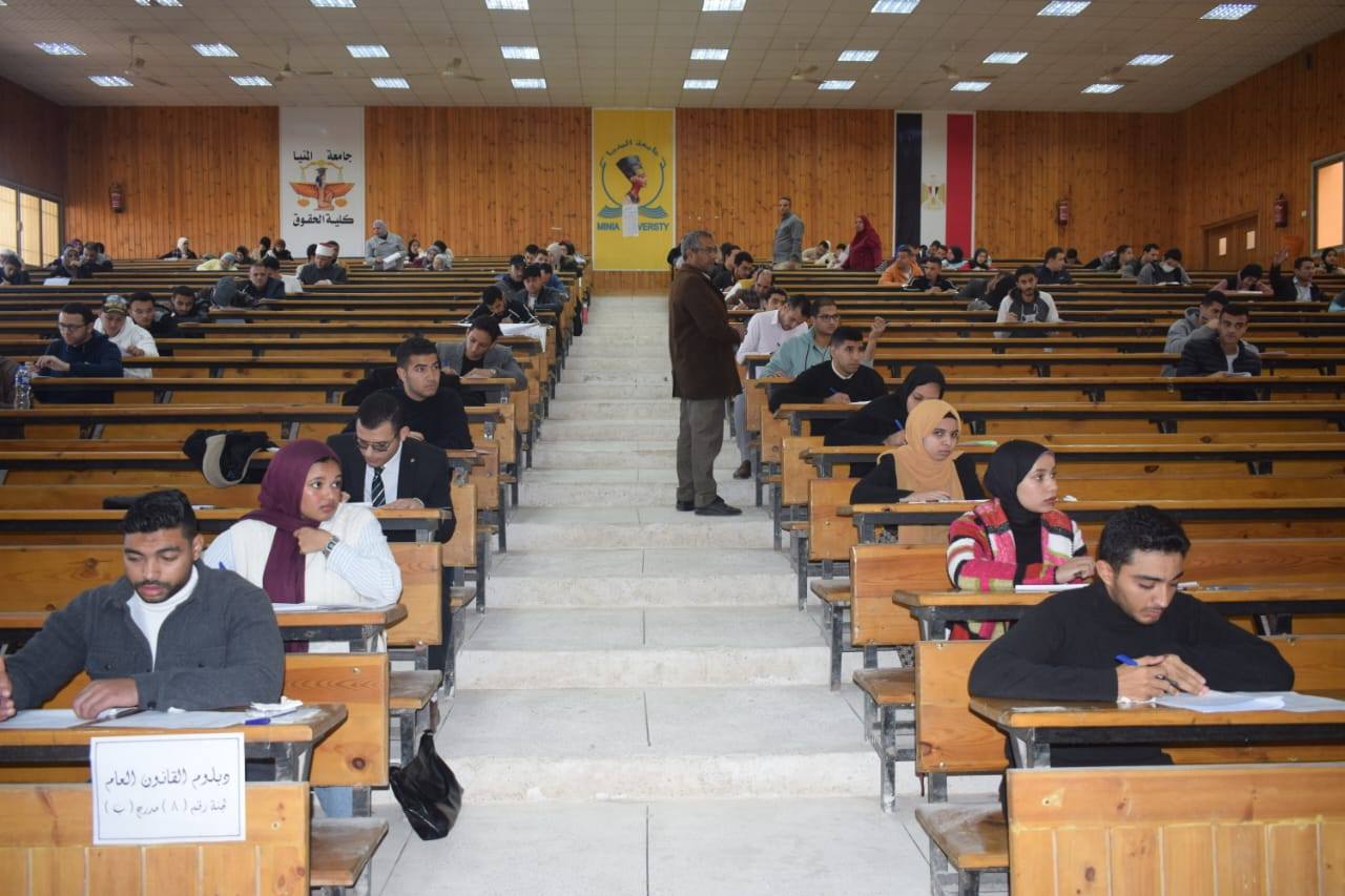 تحت رعاية معالي الأستاذ الدكتور/ عصام الدين صادق فرحات _ رئيس جامعة المنيا، والأستاذ الدكتور/ حسام الدين شوقي _ نائب رئيس الجامعة لشئون الدراسات العليا والبحوث، والأستاذ الدكتور/حسن سند - عميد كلية الحقوق بجامعة المنيا، وإشراف الأستاذ الدكتور/ حشمت محمد عبده - وكيل الكلية لشئون الدراسات العليا والبحوث، إنطلقت اليوم الأحد الموافق ٢٠٢٦/٢/٨م فعاليات امتحانات نهاية الفصل الدراسي الأول لطلاب الدراسات العليا بكلية الحقوق بجامعة المنيا للعام الجامعي ٢٠٢٦/٢٠٢٥م (سنة تمهيدية/ دبلوم القانون العام/ دبلوم القانون الخاص/ دبلوم حقوق الإنسان / تأهيلي دكتوراة)، حيث امتحن طلاب (السنة التمهيدية) في مادة "مبادئ القانون" كما امتحن طلاب ( دبلوم القانون العام) في مادة " نظم الحكم في الإسلام والنظم الوضعية"، كما امتحن طلاب (دبلوم القانون الخاص) في مادة " تنازع القوانين في العقود الدولية" كما امتحن طلاب ( دبلوم حقوق الإنسان" في مادة "القانون الدولي لحقوق الإنسان"، كم امتحن طلاب تأهيلي الدكتوراة في مادة " مقرر قانوني بلغة أجنبية " وذلك في الفترة من الساعة العاشرة صباحا حتى الساعة الثانية عشرة ظهرا، وقد تفقد سعادة العميد سير العملية الإمتحانية، ونبه سيادته على عدم اصطحاب التليفون المحمول وأية أجهزة مرئية أو سمعية من وظيفتها نقل البيانات والمعلومات داخل اللجان الإمتحانية، أو أية متعلقات تخص مواد الامتحانات، وأكد سيادته على أن من يضبط وبحوزته مثل هذه الأجهزة أو تلك المتعلقات سوف يتم حرمانه من امتحان المادة وتحويله للشئون القانونية للتحقيق معه واتخاذ الإجراءات القانونية ضده، كما أوضح سيادته بأن أسئلة الامتحان لم تخرج عن المنهج الدراسي لكل مادة، كما أن أسئلة الامتحان جاءت طبقا لمعايير الورقة الإمتحانية ومعايير الجودة، كما حث سيادته جميع القائمين على سير العملية الإمتحانية على توفير كافة سبل الراحة والهدوء للطلاب الممتحنين.