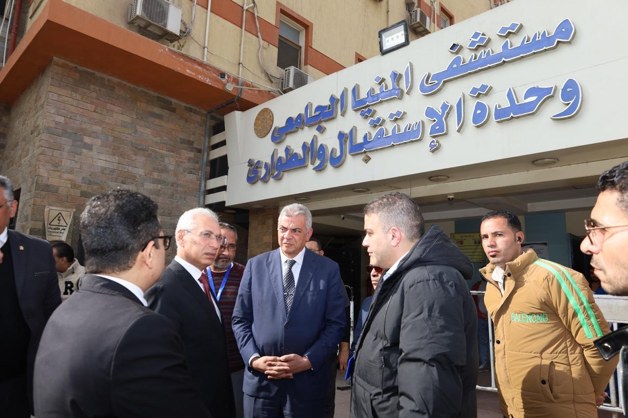 رئيس جامعة المنيا يتفقد مستشفى الاستقبال والطوارئ ومستشفى الكبد الجامعي ويطمئن على مصابي الحوادث د. عصام فرحات: المستشفيات الجامعية تعمل بأعلى درجات الجاهزية وكفاءة الأطقم الطبية